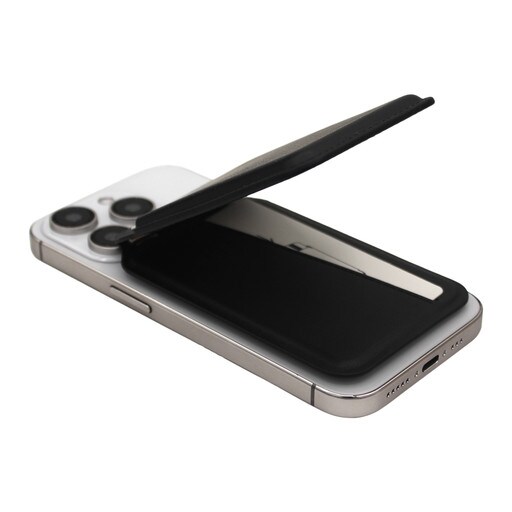 The iMobile Wallet Pro for MagSafe combines style and functionality. Crafted from premium vegan leather, it magnetically attaches to your phone, holding up to 6 cards for easy access. With its clever design, it doubles as a phone stand, perfect for hands-free viewing on the go. Slim and durable, this wallet adds convenience and elegance to your everyday essentials while maintaining a compact profile. Perfect for modern lifestyles! Magnetic ring adapter included.