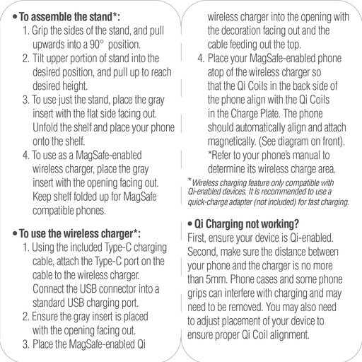 Easily adjustable in a variety of height options and angles, the stand is built to last with strong ABS plastic. Maximize brand impressions with 2 imprint areas: 1 on the removable MagSecure wireless charger, and 1 on the base of the stand. Make the multifunctional iStand Plus with Removable 15W MagSecure Wireless Charger your do-it-all brand endorser. Magnetic ring adapter included. Compatible with any Qi-enabled or MagSafe-enabled devices.