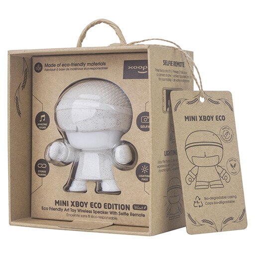 SKU: 70933 Part SKU: Xoopar Mini XBoy Speaker SHIPS NEXT DAY PROGRAMS ECO-FRIENDLY Body Color: Pricing 25 +50 +100 +125 +150 +Net$47.22$45.75$42.45$41.85$39.58 Decoration Method1 ColorFull ColorFirst LocationAdditional Locations1 ColorSetupRun ChargeSetupRun ChargeNetIncludedIncludedFree!Free! Spec SheetArt Template Product DetailsProduct SpecsShipping DetailsProduct Safety4 hours of play timeMono (1x) or stereo (2x) useIntegrated selfie remoteMade from recycled plasticDetachable charging cable included Take a musical break with the Xoopar Mini XBoy Speaker wherever you are and surprise those around you with all the features it offers! With 4 hours of continuous music playback time this Bluetooth speaker connects to your smartphone (or computer) and features a multi-LED light face and integrated strap that allows you to hang it anywhere. Capture your best moments with the integrated selfie remote control. Pair 2 Mini XBoys and get 360¡ stereo sound! Emoji stickers included, allowing you to customize your product according to your moods! Min Order Qty: 25 Production Time: Ships in 1 Day Decoration Options: Up to a 3-color Imprint, Full Color Process Imprint Area: 0.71" x 0.71" Product Dimensions: 2.87" x 2.64" x 2.2" Weight: 80 g Material: Recycled Plastic Included Standard: Instructions, Charging Cable, Retail Packaging Master Carton Case Pack: 54 Master Carton Dimensions: 19" x 13" x 14" Master Carton Weight: 20.46 lbs SMETA AUDIT REPORT: SMETA: Sedex Members Ethical Trade Audit Report Login Login to check inventory, order sample, get a quote and more. Connect with a Distributor