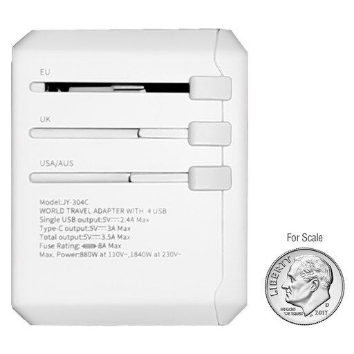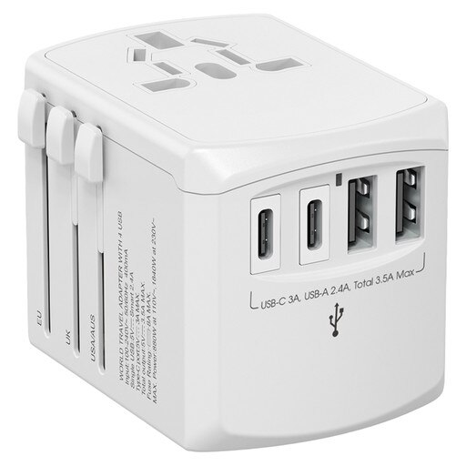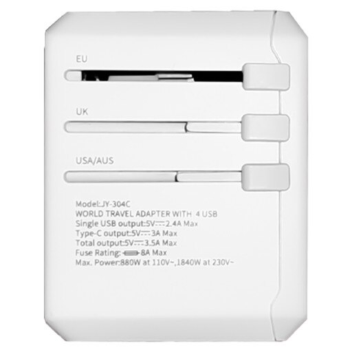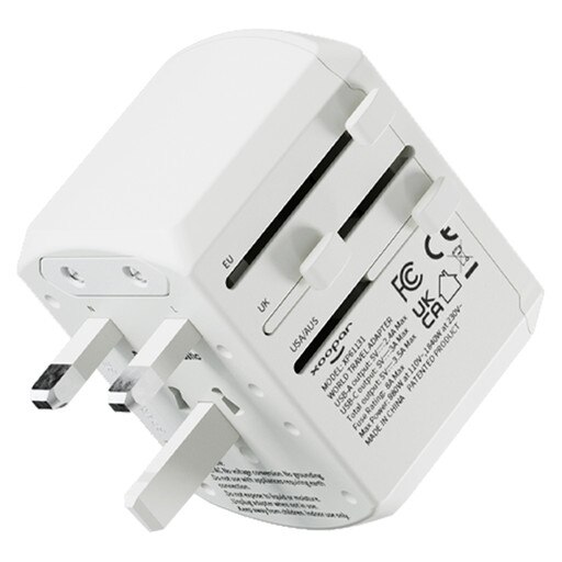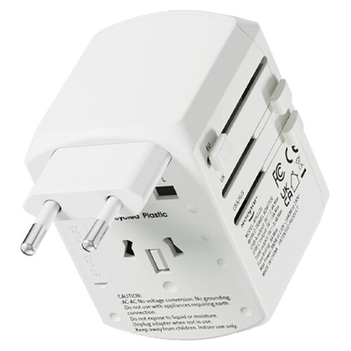 SKU: 70953 Part SKU: 70953-WHT Xoopar Tripper Universal Adapter SHIPS NEXT DAY PROGRAMS ECO-FRIENDLY Body Color: White Pricing 25 +50 +100 +150 +200 +Net$55.85$52.32$45.18$43.98$39.75 Decoration Method1 ColorMulti ColorFull ColorFirst LocationAdditional Locations1 ColorSetupRun ChargeSetupRun ChargeNetIncludedIncludedFree!Free! Spec SheetArt Template Product DetailsProduct SpecsShipping DetailsProduct SafetyCompatible with all devicesSlide to activate AUS, EU, US, or UK plug optionsAUS, EU, US, or UK inputs2x USB and 2x USB-C inputsMade from recycled plastic The Xoopar Tripper Universal Adapter travels wherever you go. It's universal plug adapters can charge multiple devices simultaneously thanks to its 2 USB, 2 USB-C and EU, UK, AU, and US plug input ports. With the slide of a switch, you can adjust the adapter to either EU, UK, AU or US plug options. This travel adapter is compatible in more than 150 countries. Min Order Qty: 25 Production Time: Ships in 1 Day Decoration Options: Up to a 3-color Imprint, Full Color Process Imprint Area: 1.34" x 0.55" Product Dimensions: 2.8" x 2.12" x 2.08" Weight: 135 g Material: Recycled Plastic Included Standard: Instructions, Retail Packaging Master Carton Case Pack: 98 Master Carton Dimensions: 18" x 12" x 10" Master Carton Weight: 34.38 lbs SMETA AUDIT REPORT: SMETA: Sedex Members Ethical Trade Audit Report Login Login to check inventory, order sample, get a quote and more. Connect with a Distributor